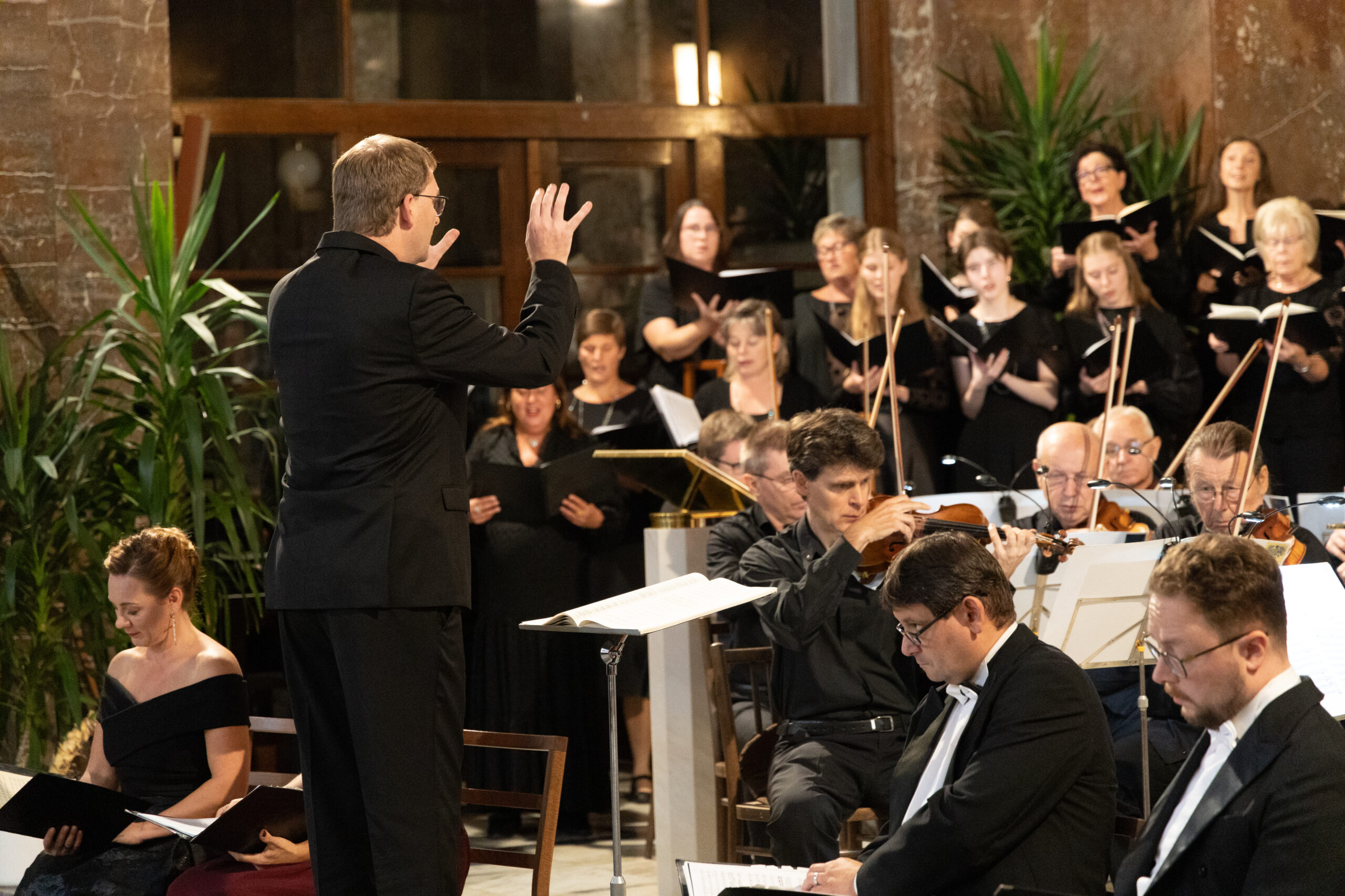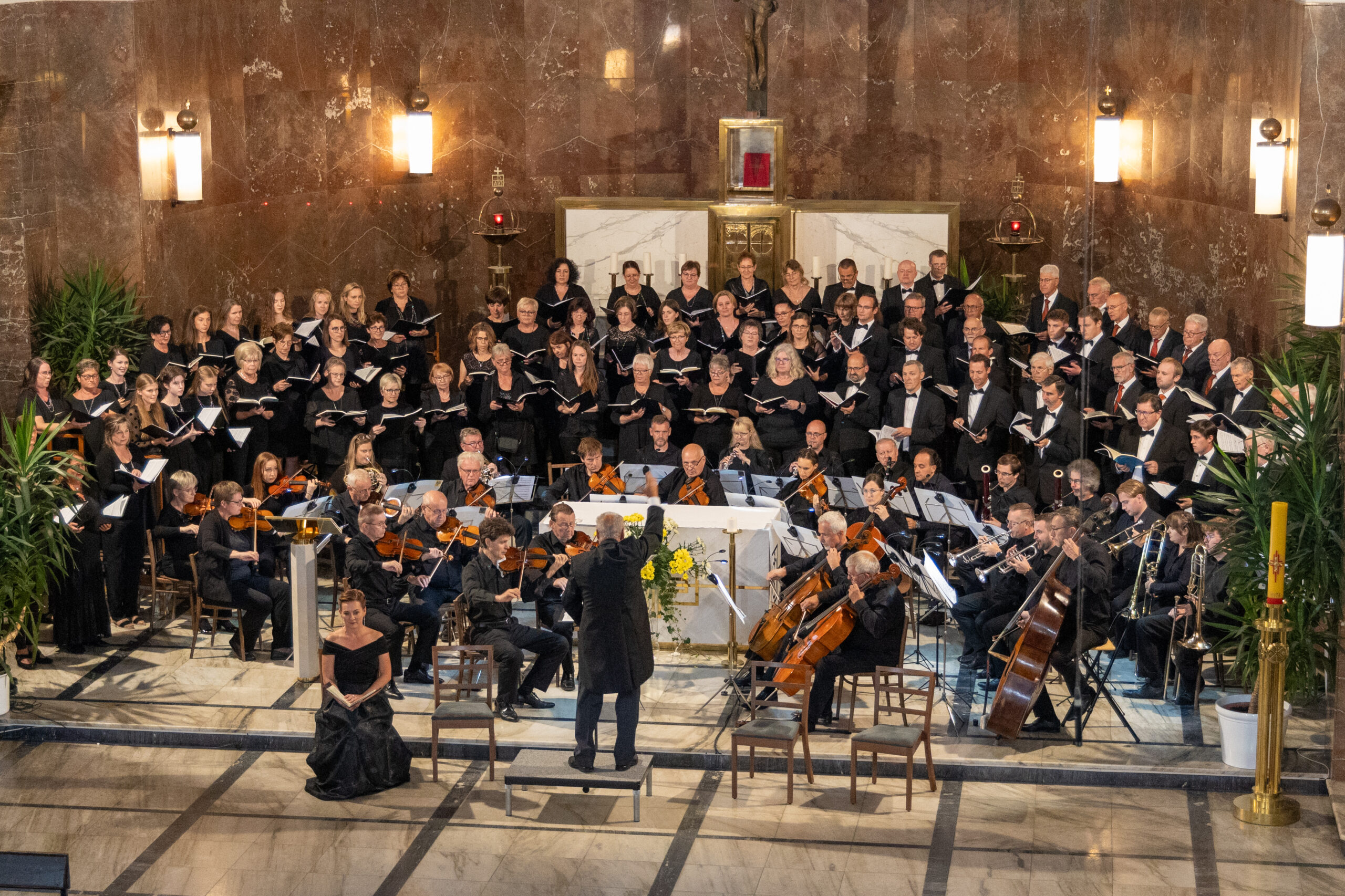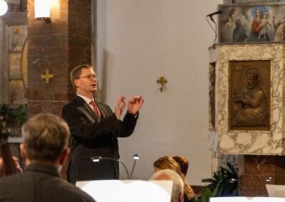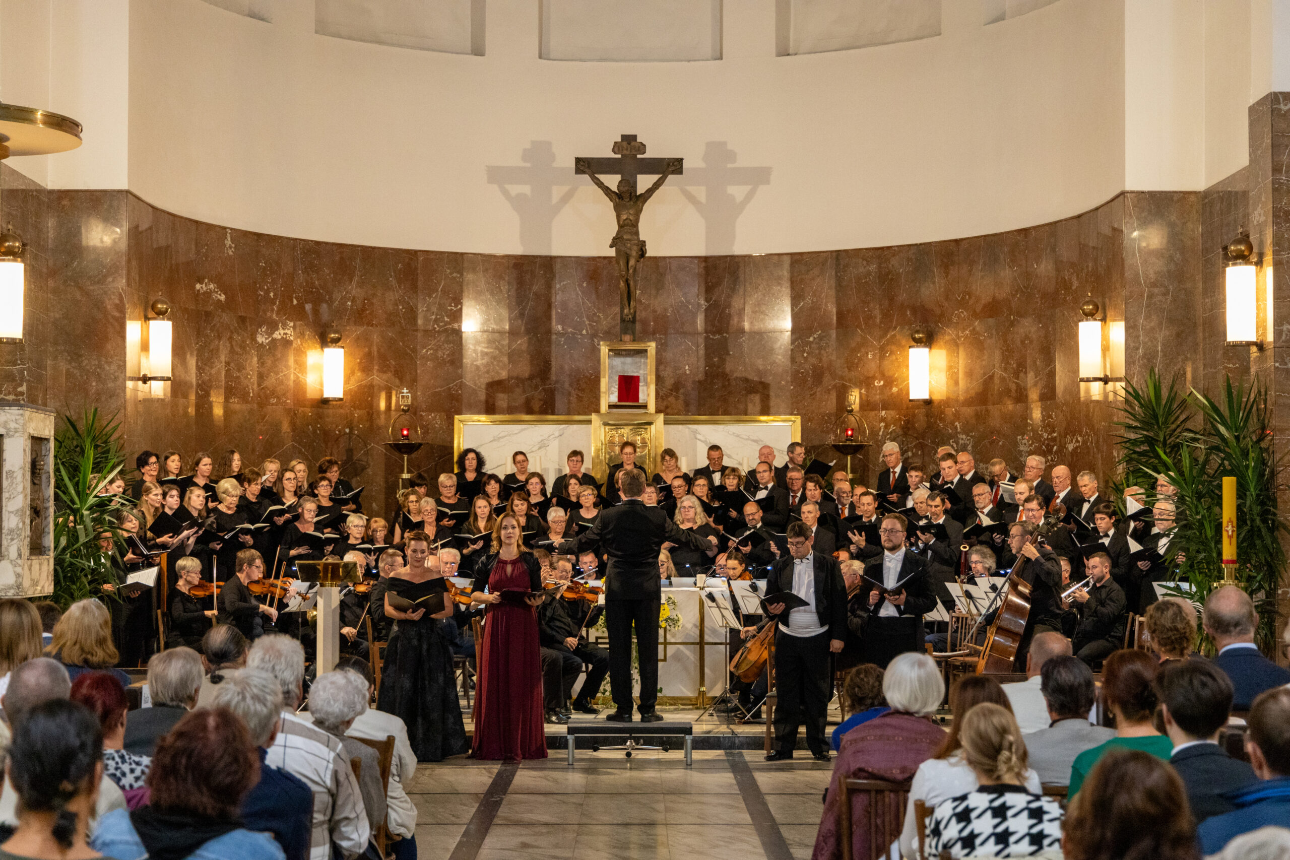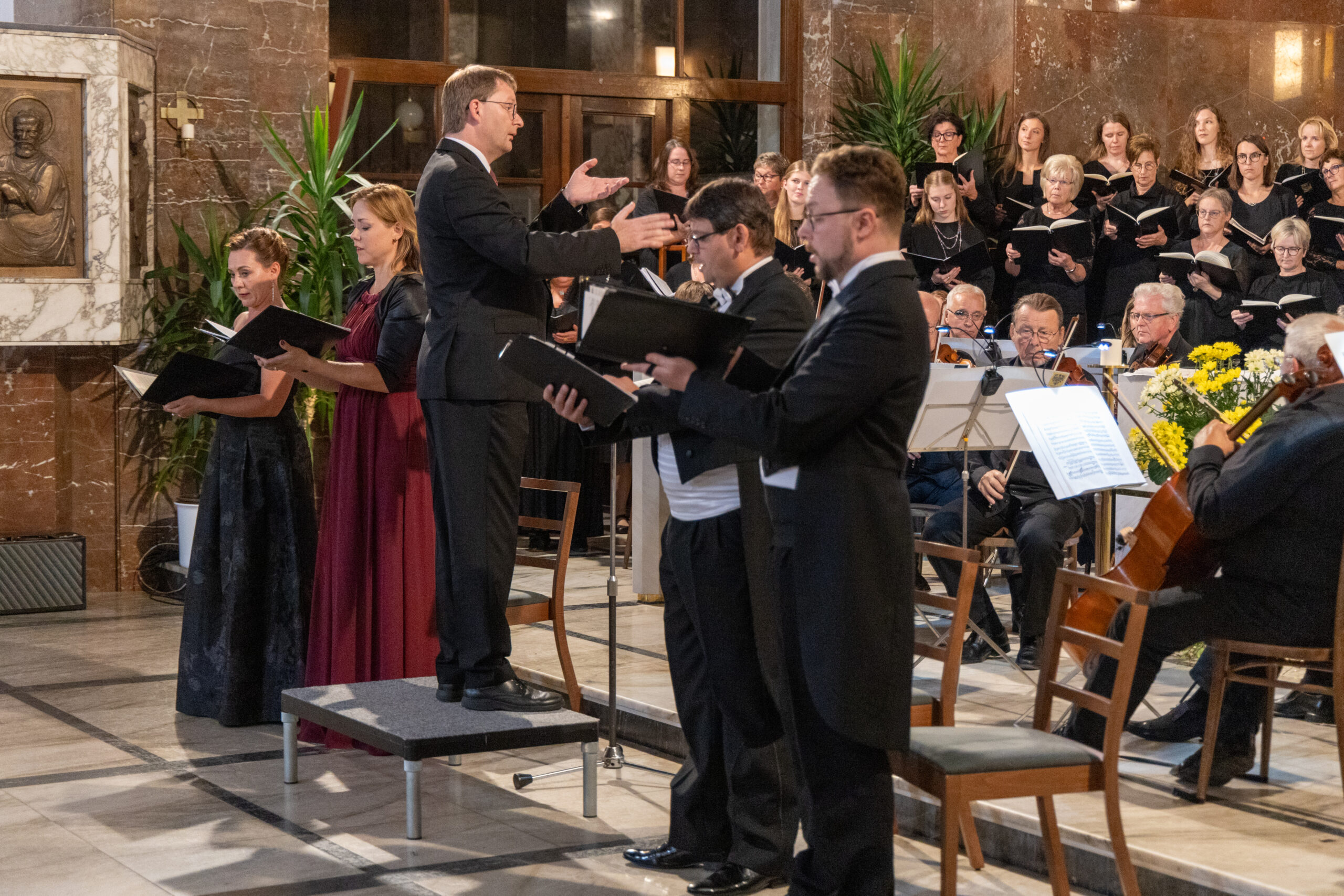 Auch beim dritten Gegenbesuch seit Beginn der Zusammenarbeit standen musikalische Höhepunkte auf dem Programm. Beim Konzert am Samstagabend in der St.-Augustin-Kirche in Brünn interpretierten die Chöre gemeinsam mit dem Orchester „Czech Virtuosi” und Solisten zuerst unter Leitung von Jaroslav Martinásek, dem langjährigen Dirigenten des Chores „Rastislav”, Stücke aus der c-Moll-Messe von Wolfgang Amadeus Mozart. Unter Leitung von Kirchenmusikdirektor Andreas Sagstetter musizierten die Ausführenden die Messe in C-Dur op. 86 von Ludwig van Beethoven.