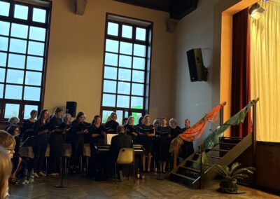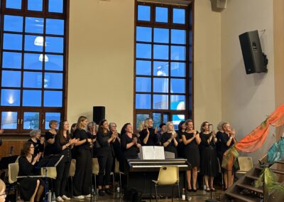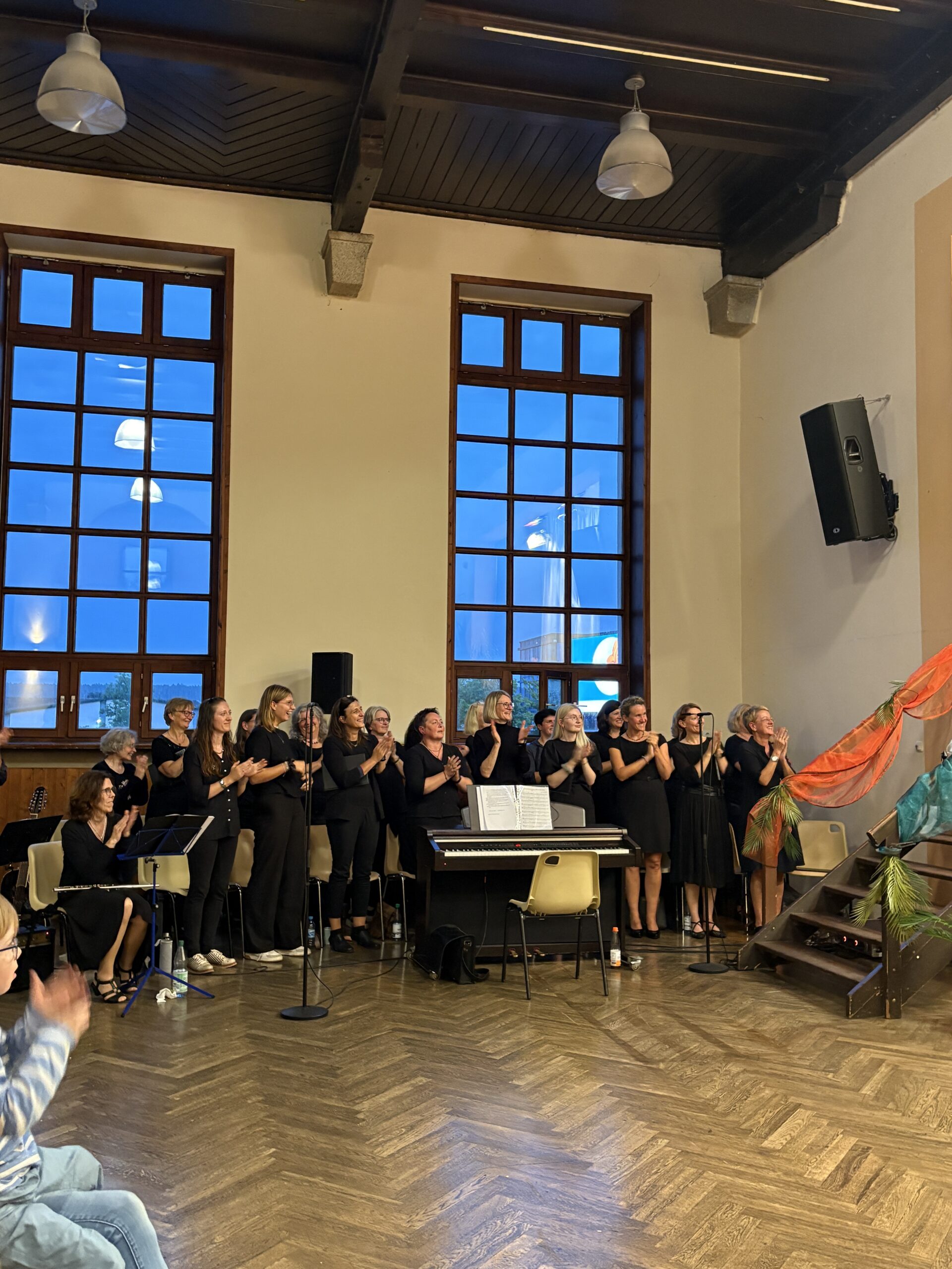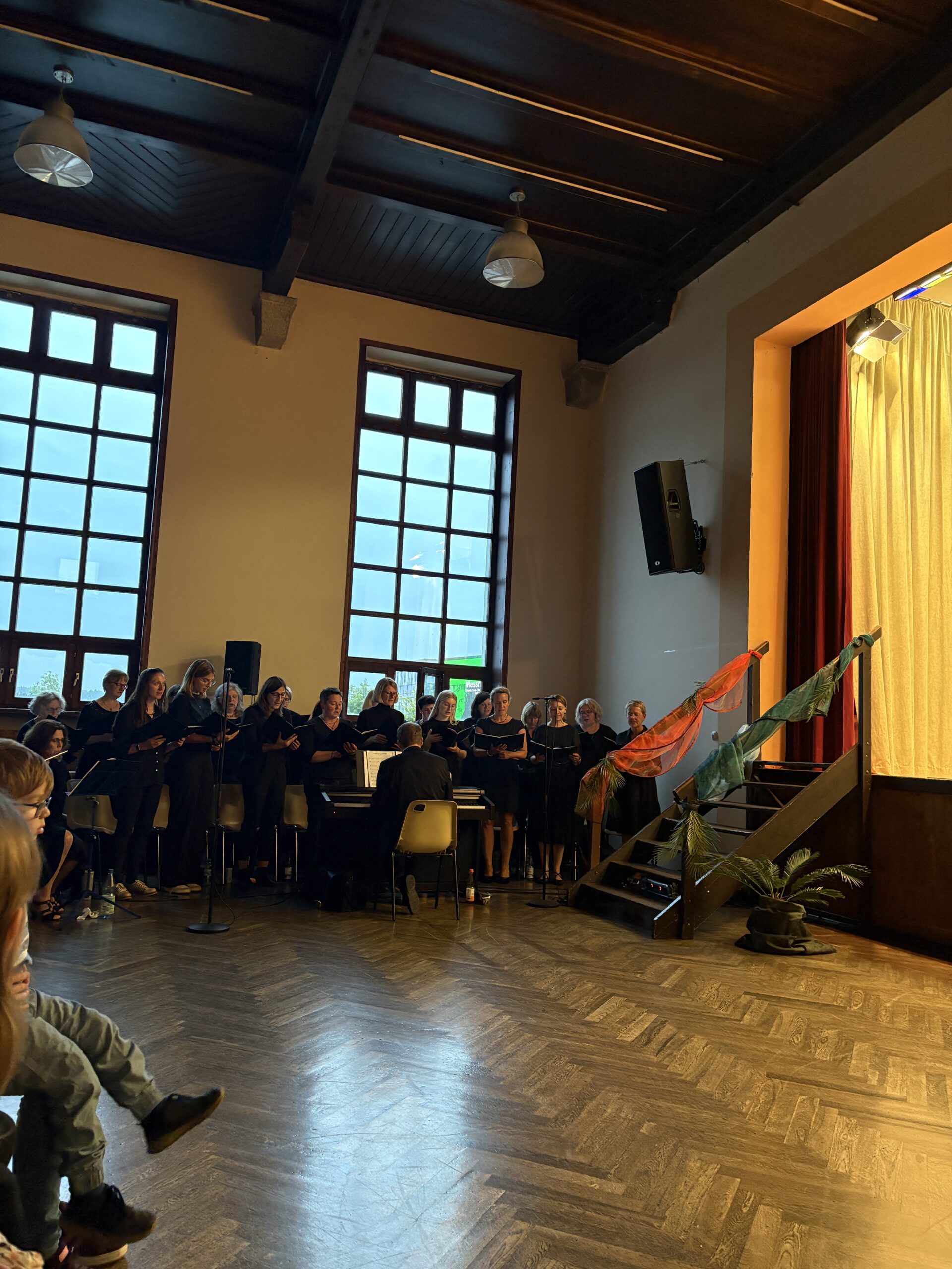 Da sich nicht alle Kinder auf der Bühne singen trauten, wurde das Ensemble vom neuen rhythmischen Chor unter der Leitung von Herrn Sagstetter unterstützt. Sie gaben den kleinen Stars die nötige Sicherheit beim Singen.