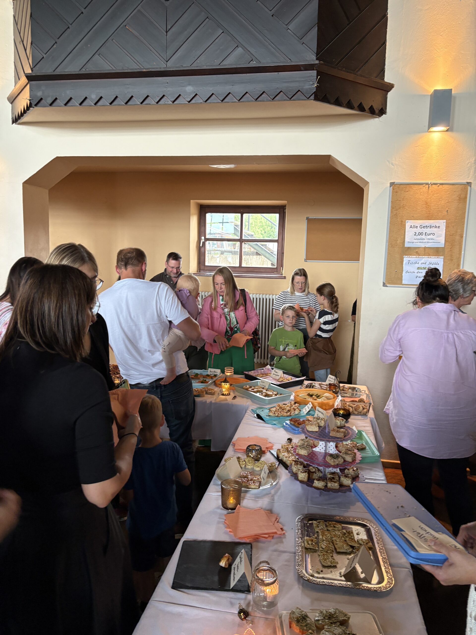 In der Pause konnten sich die Gäste stärken am reichhaltigen Buffet durch das „Fingerfood“, das viele Helfer* innen extra fürs Musical gezaubert hatten.