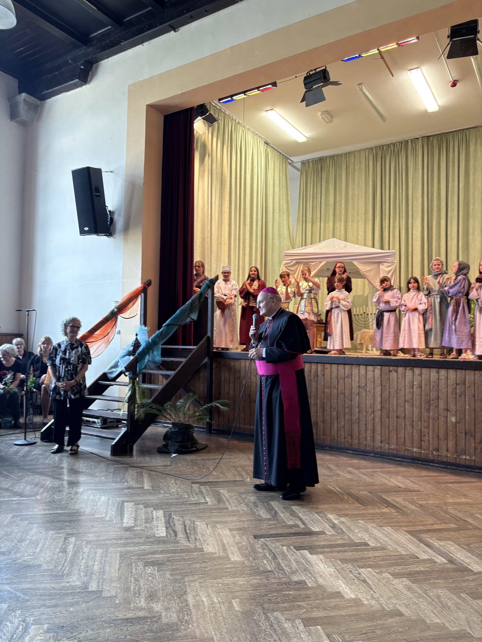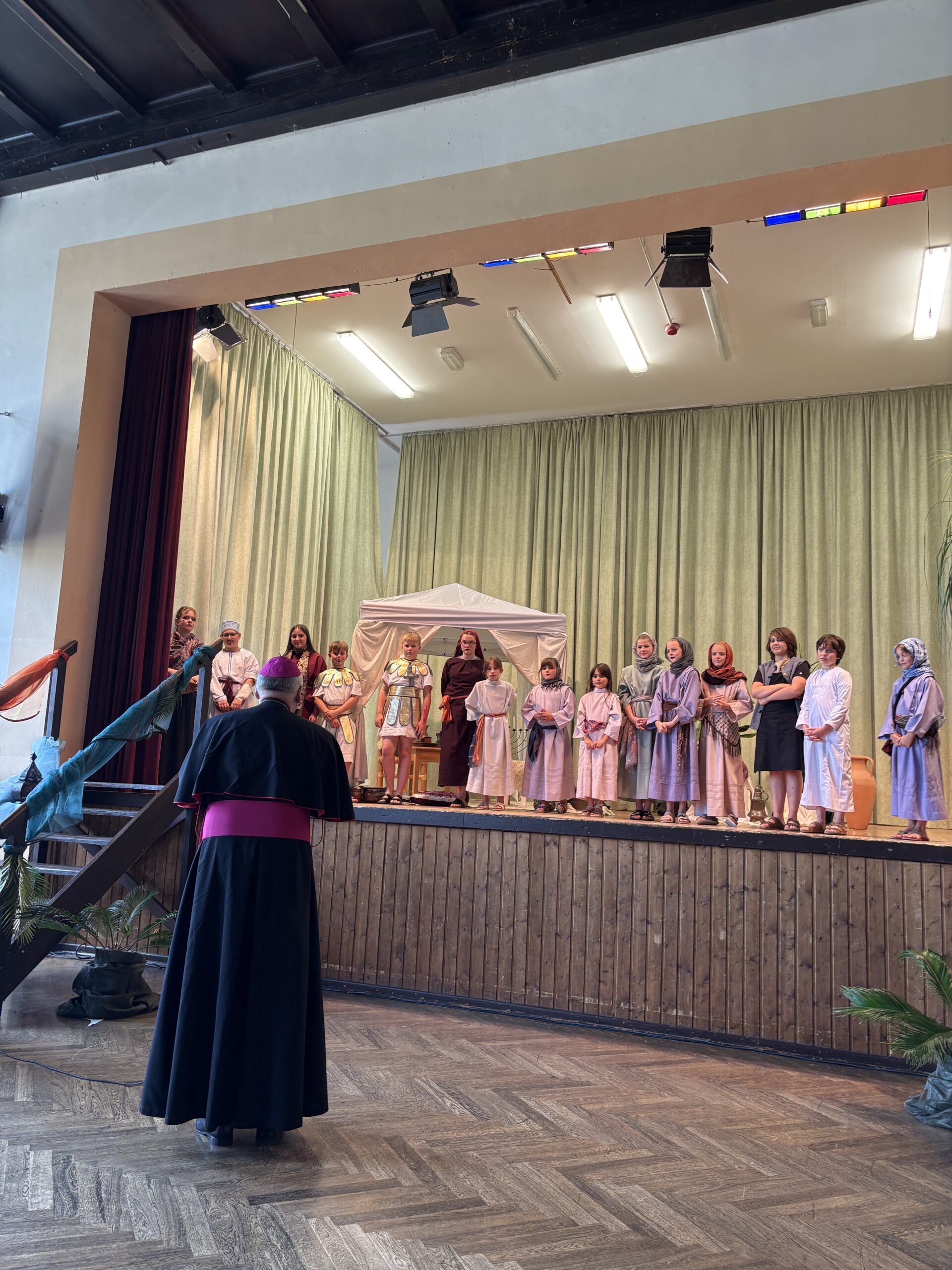 Am Sonntag konnte man dann, mit H. Herrn Bischof Dr. Rudolf Voderholzer, einen ganz prominenten Gast begrüßen. Er kam extra aus Regensburg und folgte der Einladung durch Gertrud Hankl. Die ganze Crew und das Schauspielensemble fühlte sich, durch seinen Besuch geehrt und sie dankten für diese Wertschätzung. Nicht nur er, sondern alle Gäste waren hellauf begeistert und spendeten reichlich Applaus.