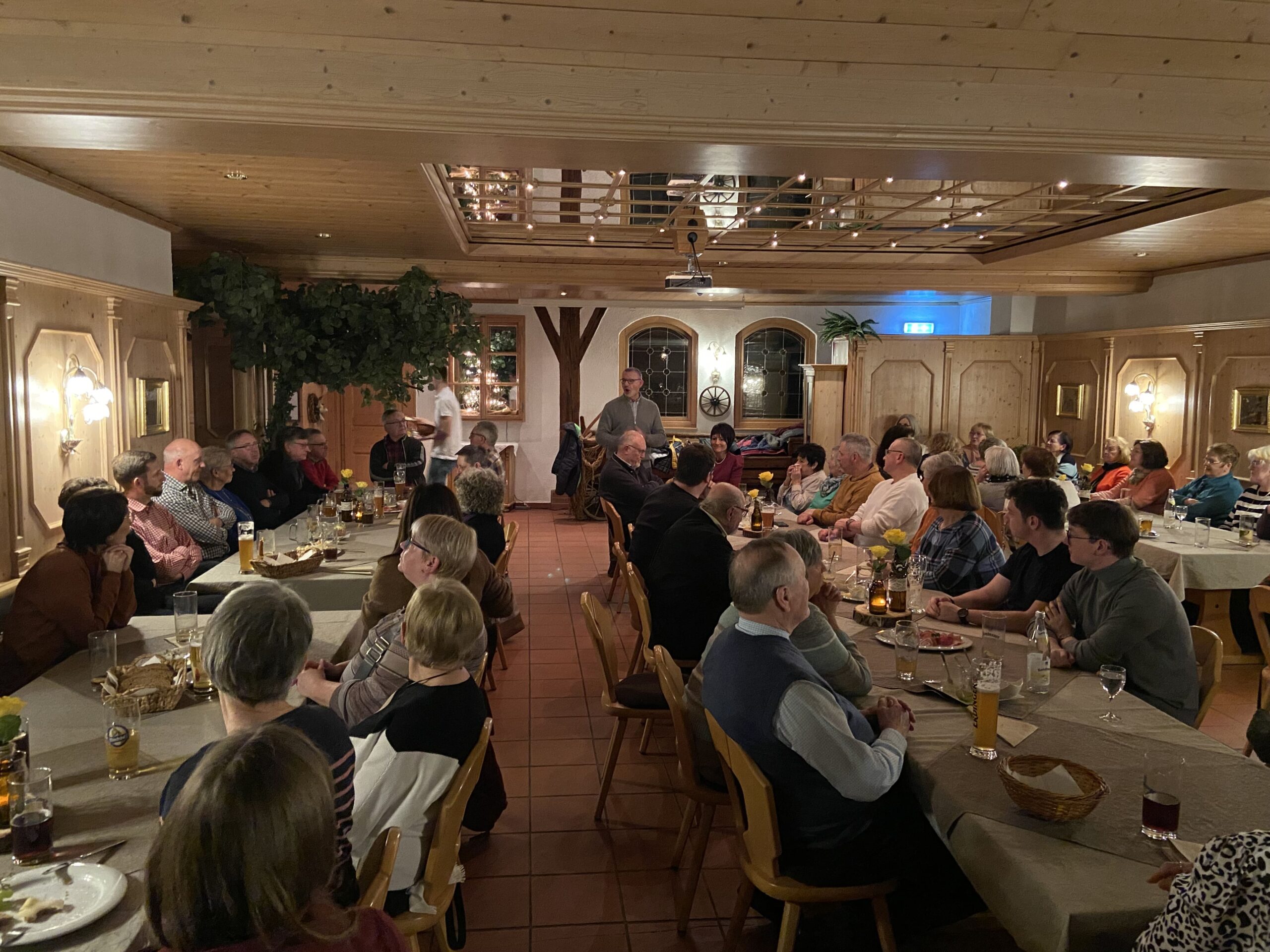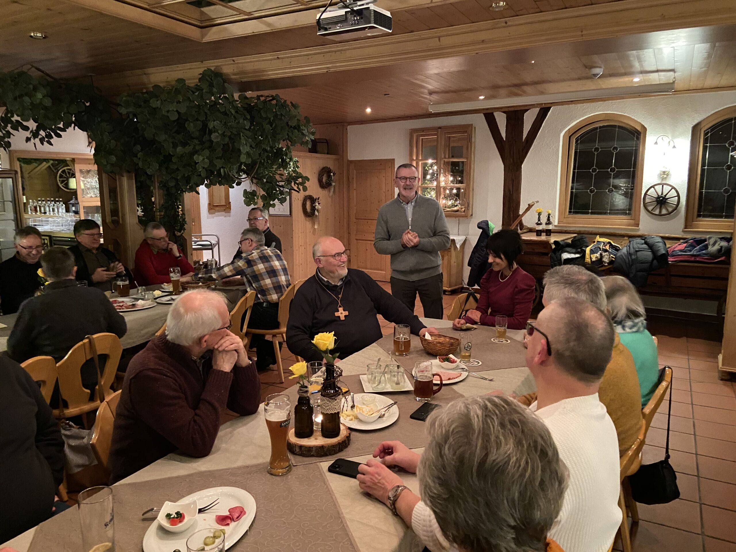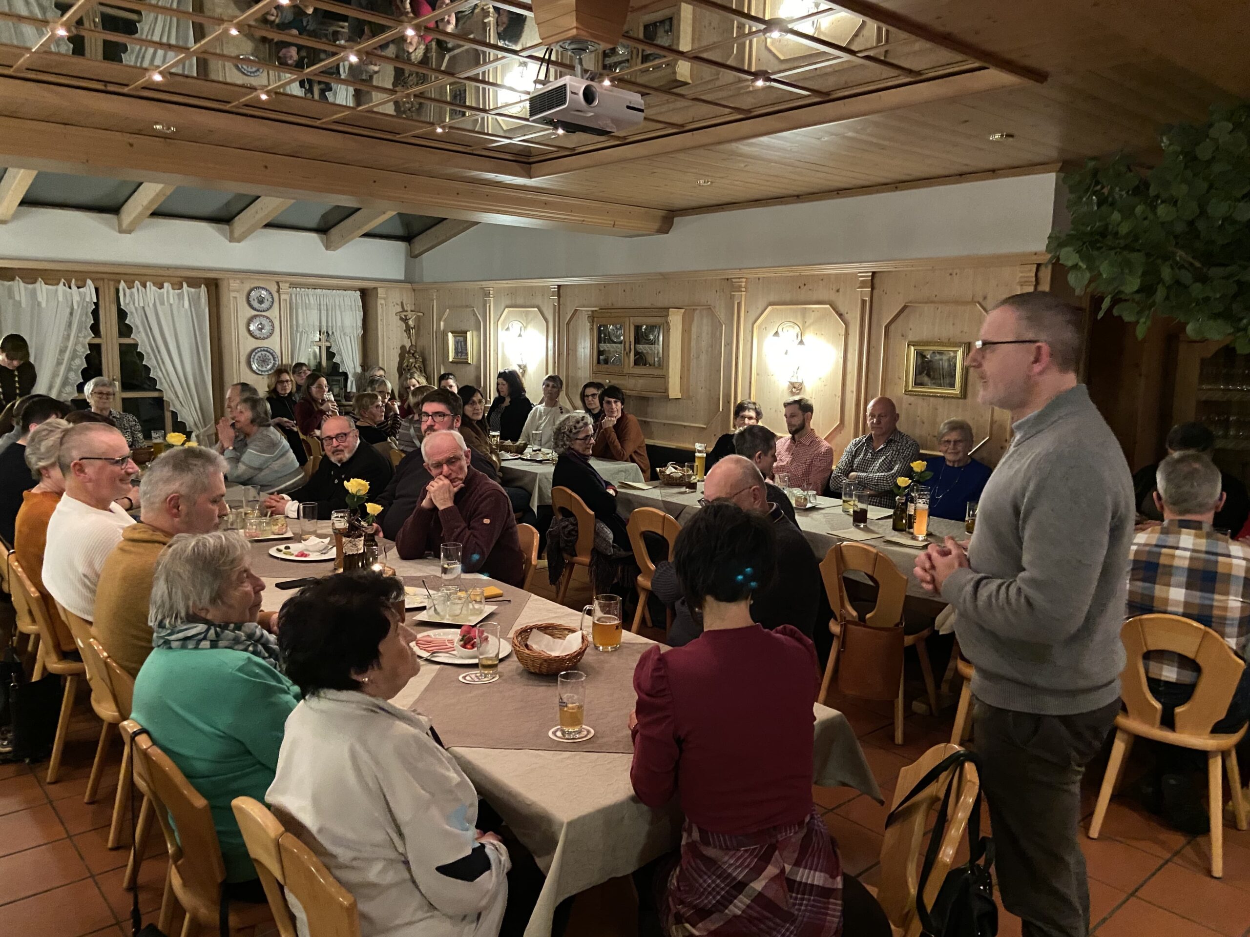 Zum Ehrenamtsabend mit Brotzeit hat die Pfarrei Waldsassen in das Gasthaus Pension Sommer nach Kondrau eingeladen. Sabine Ernstberger und Andreas Grillmeier, Sprecher im Pfarrgemeinderat Waldsassen, haben den Abend stellvertretend für Stadtpfarrer Thomas Vogl eröffnet, der nach der Vorabendmesse zur Gesellschaft dazu kam. Die beiden Sprecher und Stadtpfarrer Vogl sprachen ein herzliches Vergelt’s Gott allen aus, die sich in der Pfarrei vielseitig engagieren und einbringen. Angefangen von der Gestaltung und Diensten in der Messfeier, in Kirchenverwaltung und Pfarrgemeinderat, bei der Basilikareinigung, Caritas-Sammlung, Familien-Gottesdienst-Kreis, Kinderkirche, Abenteuer-Kirche, Kommunionhelfer und Lektoren, Ministrantendienst, Rosenkranzgebet, Kirchenmusik und Basilikachor, u.v.m. Großer Dank ging auch an die kirchlichen Vereine der Pfarrei, die einen wertvollen Beitrag im Pfarrleben leisten. „Viele Frauen und Männer, Kinder und Jugendliche engagieren sich in unserer Kirchengemeinde und tragen somit bei, dass die Pfarreiengemeinschaft Waldsassen-Münchenreuth so lebendig ist“, hob Pfarrer Vogl hervor. In Hinblick auf die Pastoralreform 2024-2034 wird das Engagement Ehrenamtlicher weiter an Bedeutung gewinnen. Herzliches Vergelt’s Gott!