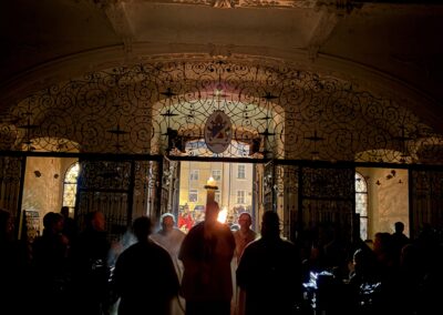 Dann wurde Nachtwache gehalten mit den Lesungen der Schöpfungsgeschichte, dem Auszug aus dem roten Meer und der Verheißung des Propheten Ezechiel, dass Gott uns allen ein Herz aus Fleisch gibt. Nach den Wochen der Fastenzeit wurde nach der neutestamentlichen Lesung das Halleluja erstmals wieder mit großer Freude gesungen, der Freude der Osterbotschaft, die im Evangelium verkündet wurde. „Christ ist erstanden“ – das Osterlied der Gemeinde bekräftige noch einmal, was gerade verkündet wurde.