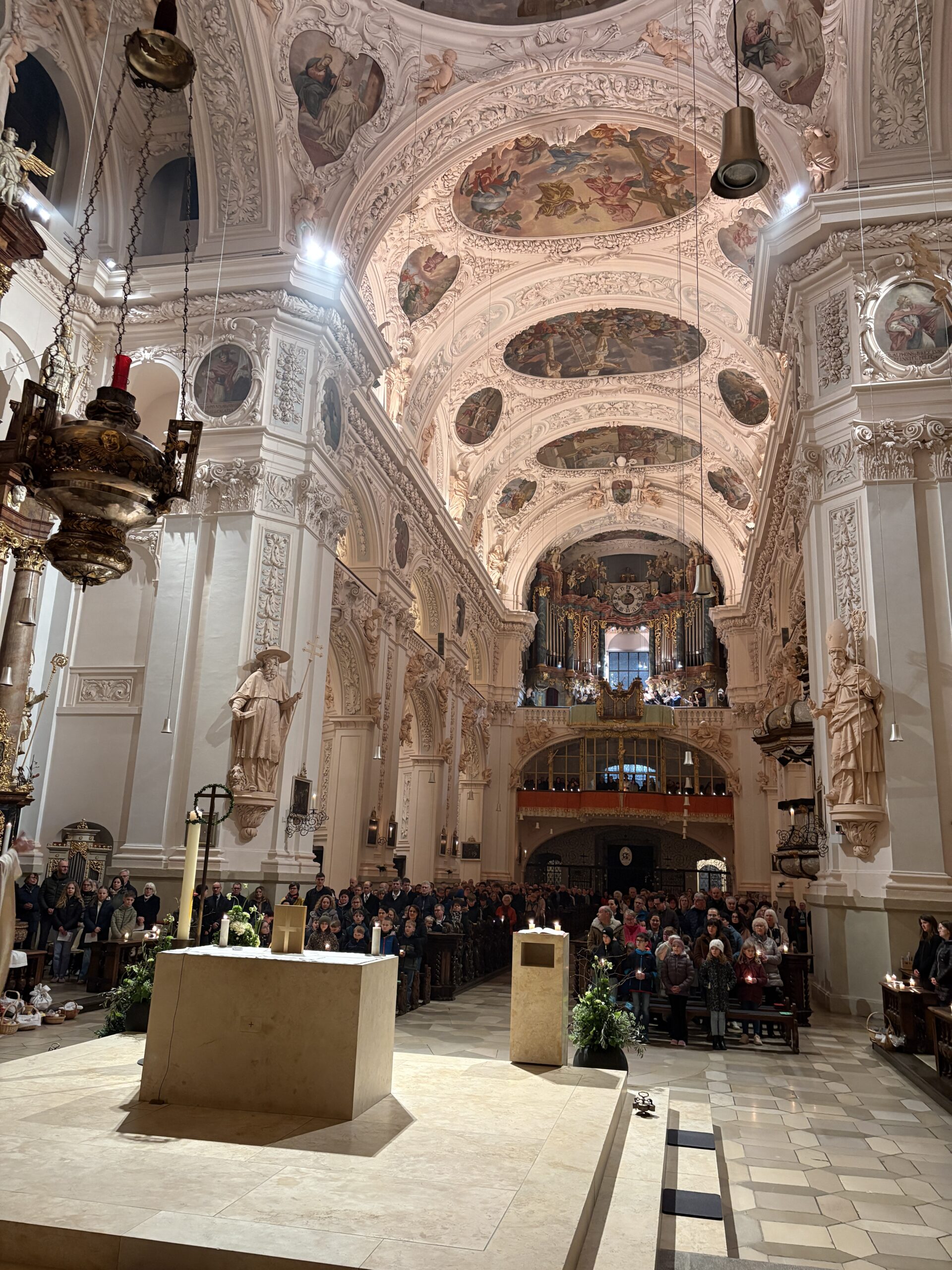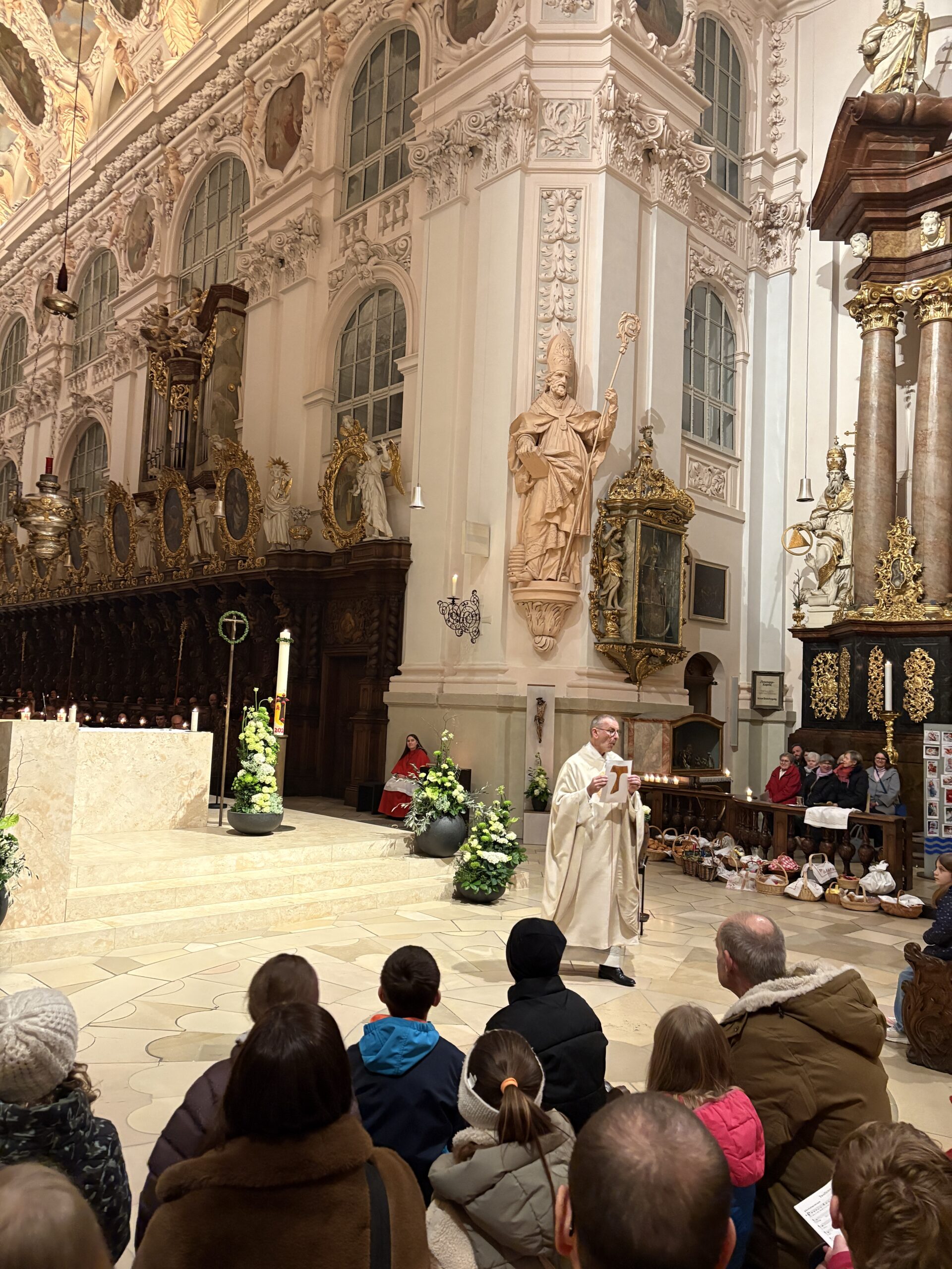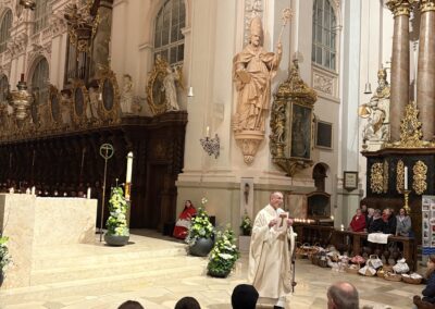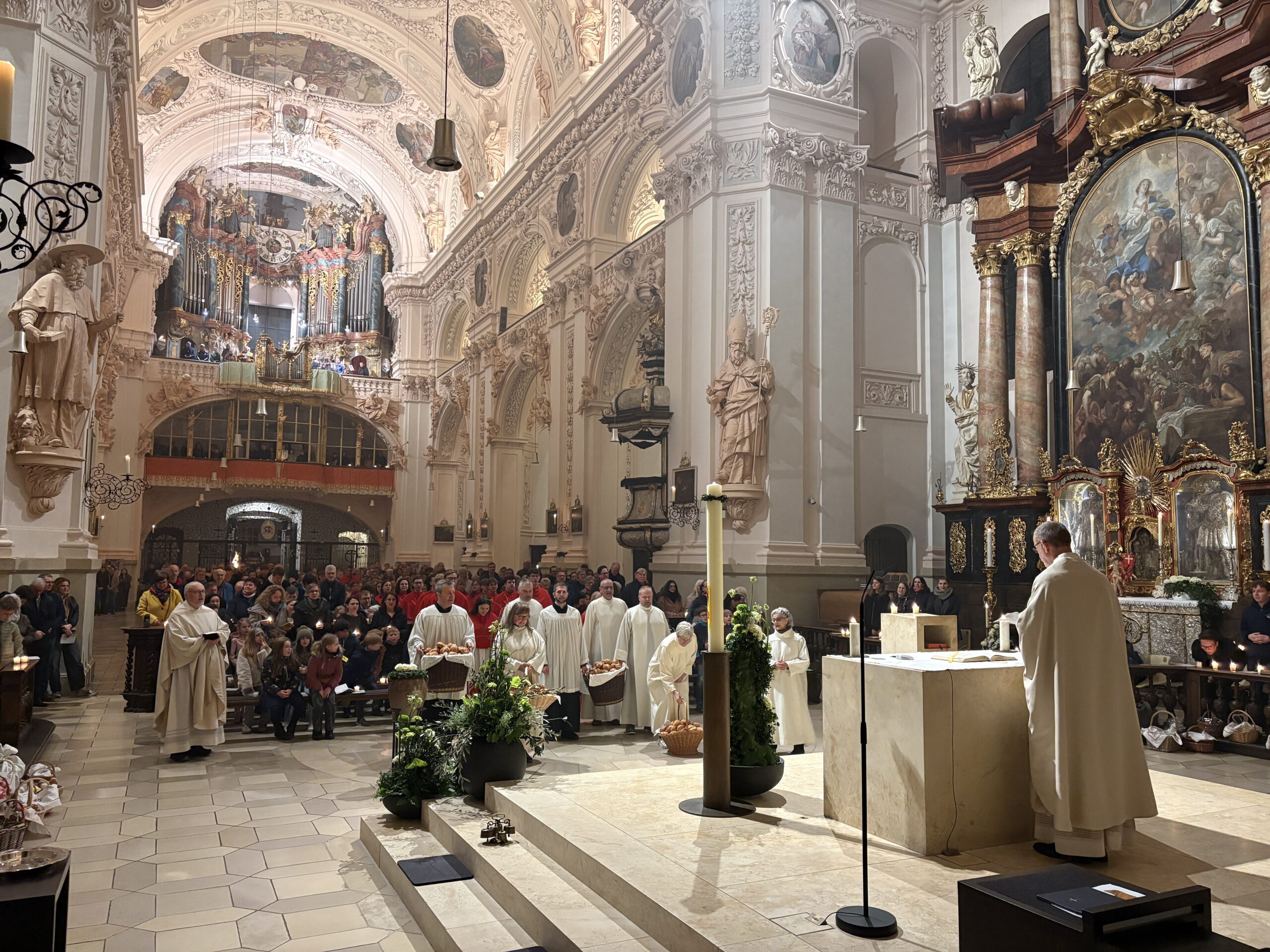 In der Tauffeier wurde dann Klara Fortelny in die Gemeinschaft der Kirche aufgenommen und mit dem Chrisam besiegelt, damit auch sie einmal Zeugin des Lebens, das Gott schenkt, wird. Schließlich erneuerten alle Gläubigen ihr Taufversprechen, zu dem dann das Osterwasser über die Gläubigen in der Basilika verteilt wurde.