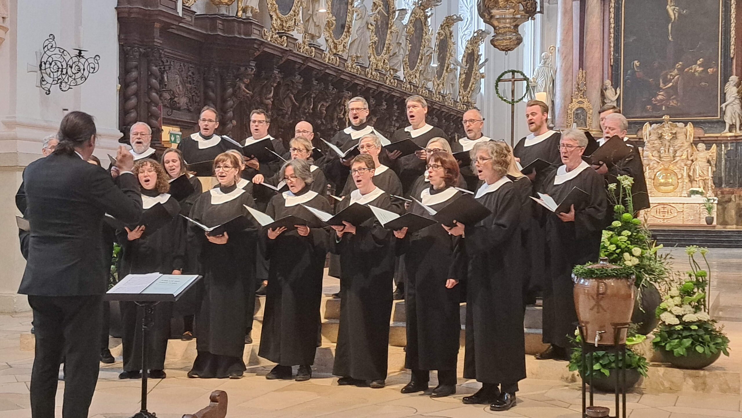 Mächtig Eindruck machte der stimmgewaltige Kammerchor der Frauenkirche Dresden bei seinem Tournee-Abschlusskonzert in der vollbesetzten Basilika und erhielt dafür am Ende zu Recht viel Beifall.