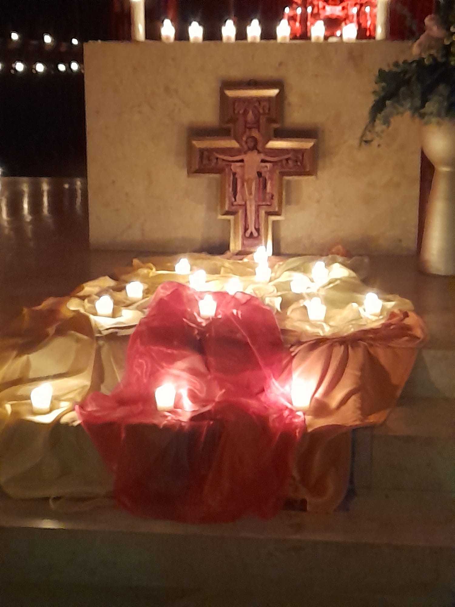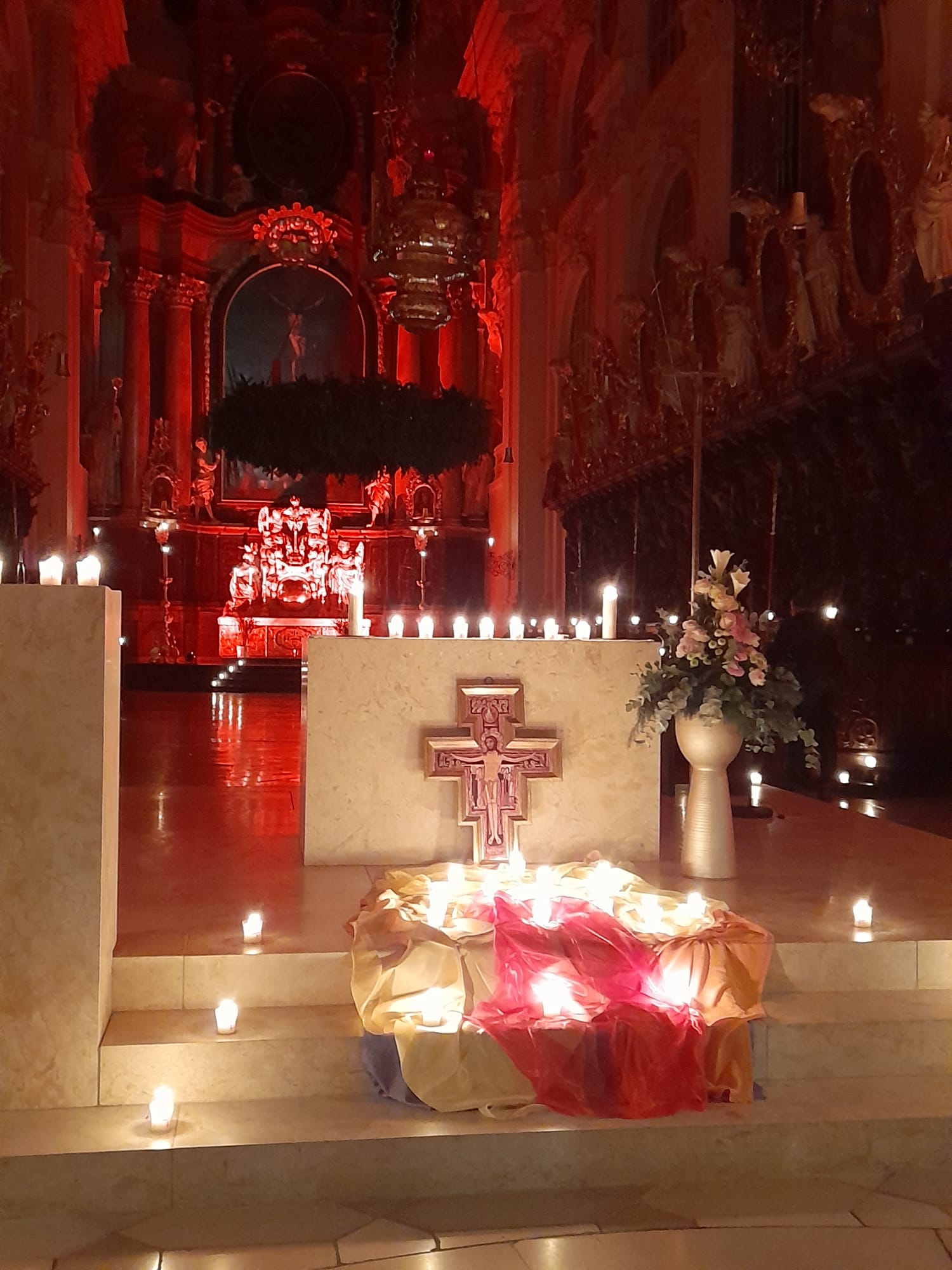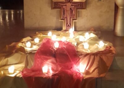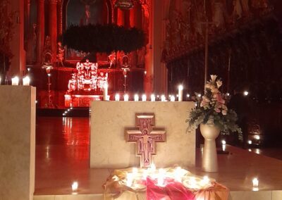 Am Freitag, den 28. November 2025 war die Basilika nur durch Kerzen erleuchtet und tauchte die Kirche in einen mysthischen Ort. Frau Hanne Chrobock von der evangelischen Gemeinde und die Gemeindereferentin Gertrud Hankl gestalteten die dreiviertel Stunde gemeinsam. Jesus sagt: „Ich bin das Licht der Welt!“, aber er gibt auch uns den Auftrag, Licht zu sein für andere. In Texten, Gebeten und einer Geschichte wurde das Thema „Licht sein für andere“ deutlich und greifbar. Adventliche und Taizee Lieder, begleitet von Herr Andreas Sagstetter und dem neuen rhythmischen Chor, trugen zur Meditation und Besinnung bei.